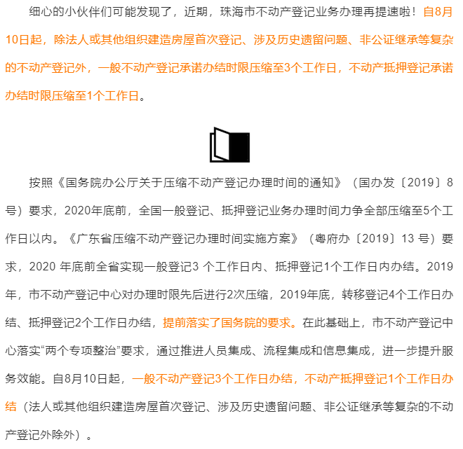 【时限压缩】解读:珠海市不动产登记业务办理再提速