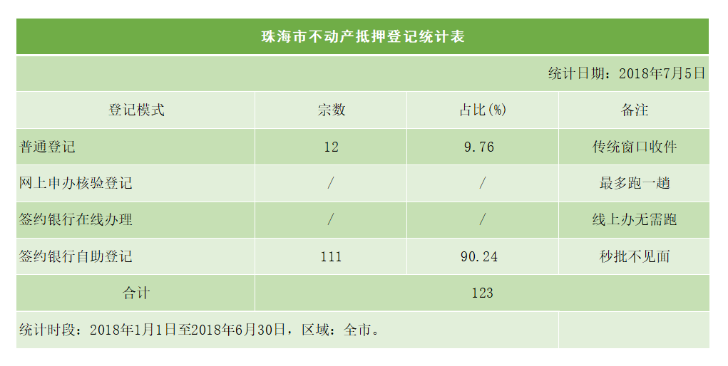 【登记数据】数据:珠海市不动产抵押登记统计表(2018年上半年)