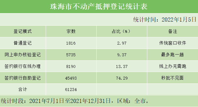 【登记数据】数据:珠海市不动产抵押登记统计表(2021年下半年)