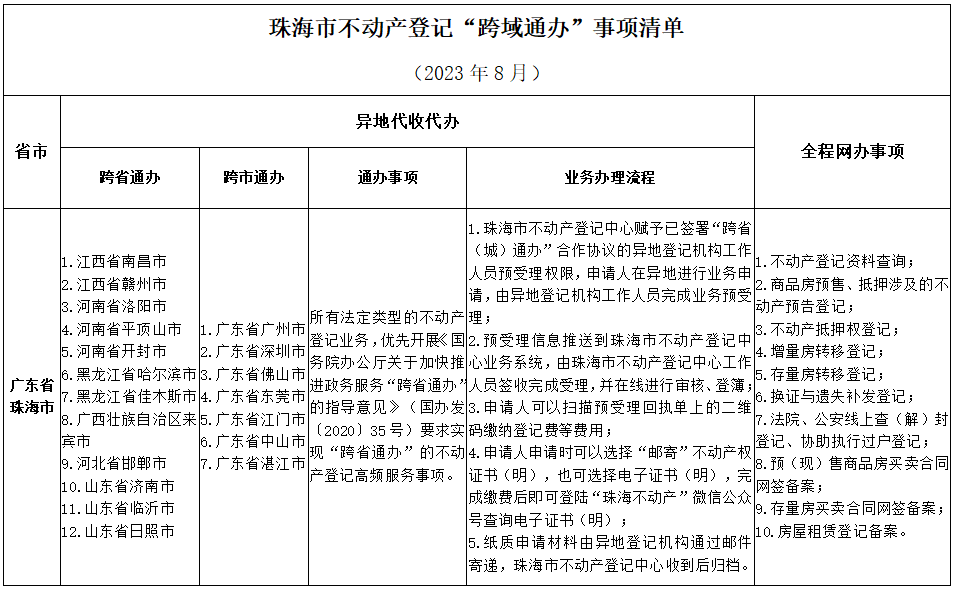 珠海市各区不动产登记“跨域通办”服务大厅地址如下: