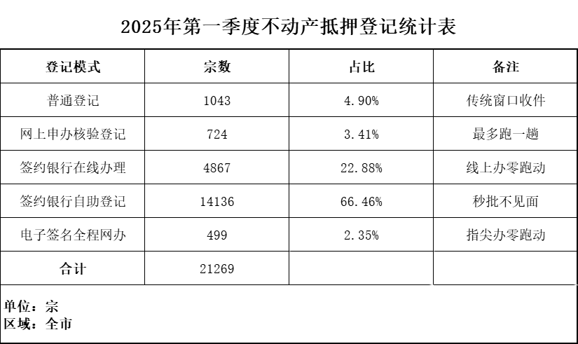 2025年第一季度不动产抵押登记统计表