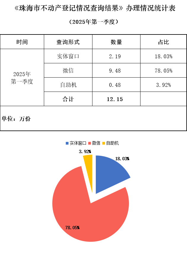 2025年第一季度《珠海市不动产登记情况查询结果》办理情况统计