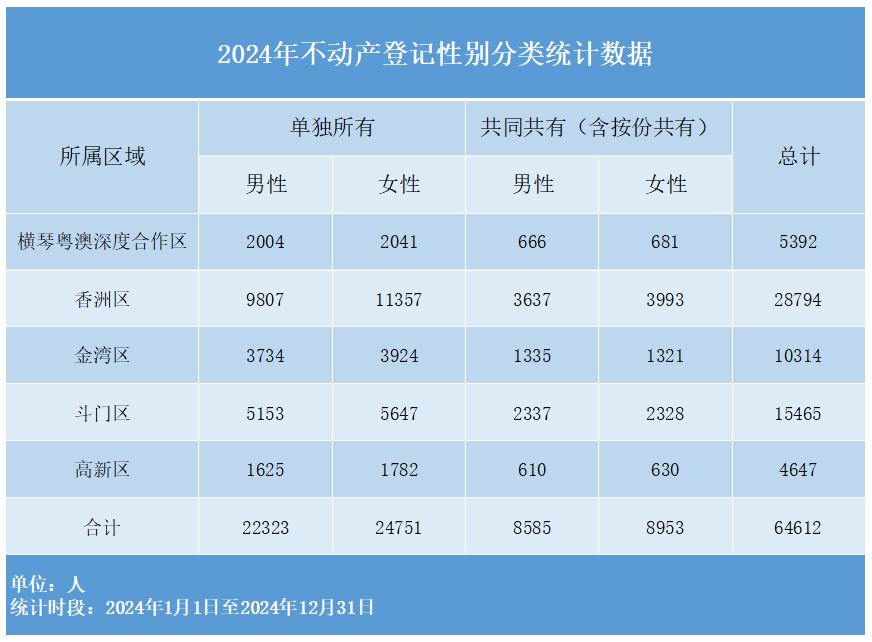 2024年不动产登记性别分类统计数据